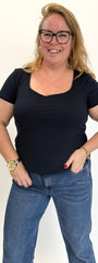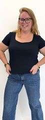 De Basic Linnies Top is ideaal voor iedere look en perfect om te dragen onder een blazer of vest. Met een stijlvolle vierkante hals en korte mouwen combineer je ‘m moeiteloos met jeans, rokken of andere lagen.