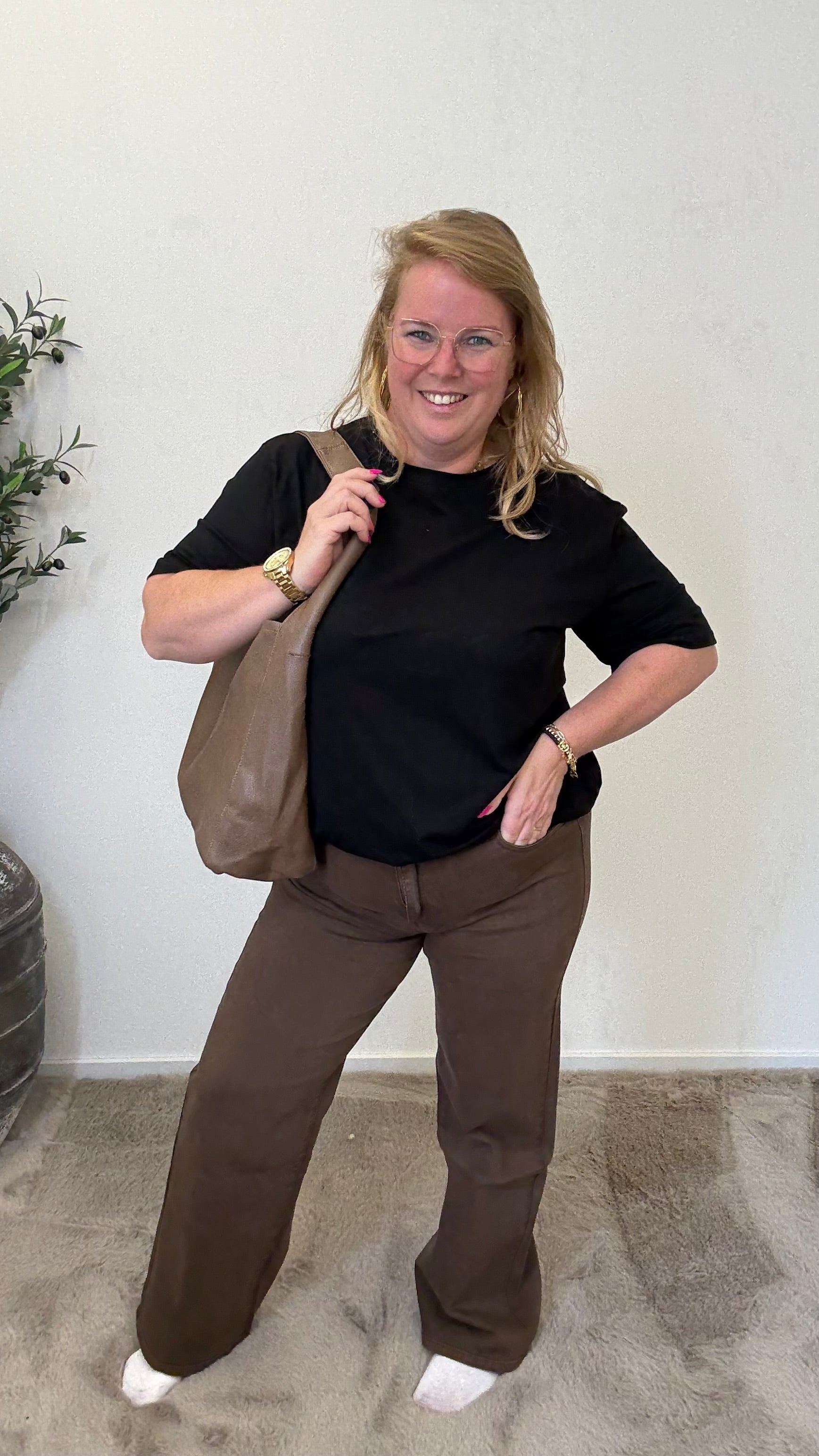 Linda ist 164 und trägt normalerweise die Größe 42/44. Sie hat eine Größe von 44.